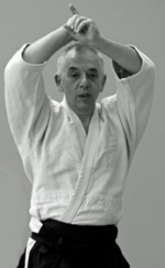 Didier ALLOUIS Shihan, 6e dan Aikikai. Chargé d’Enseignement National de la Fédération Française d’Aikido et Budo (FFAB) démontre les 32 directions au bokken, à partir de 4 déplacements.
